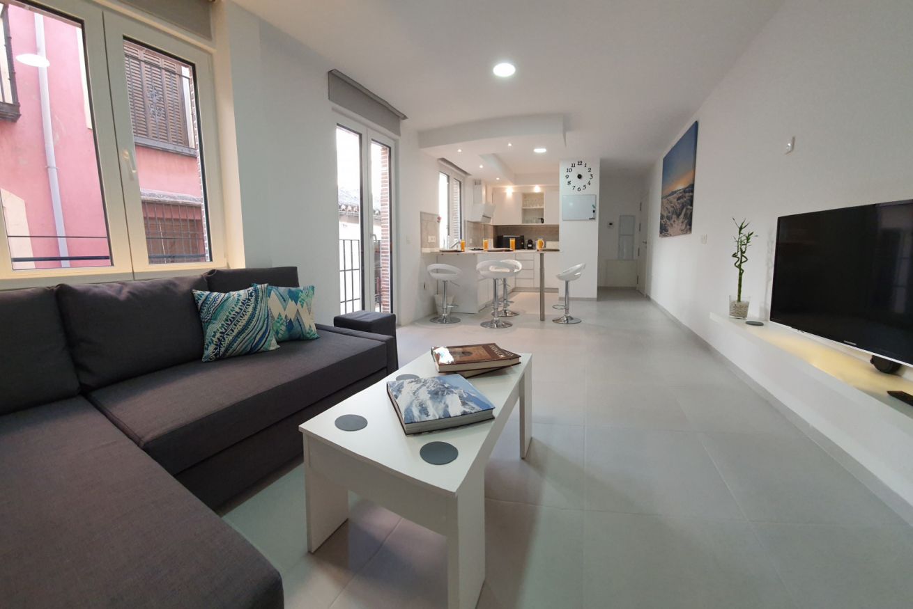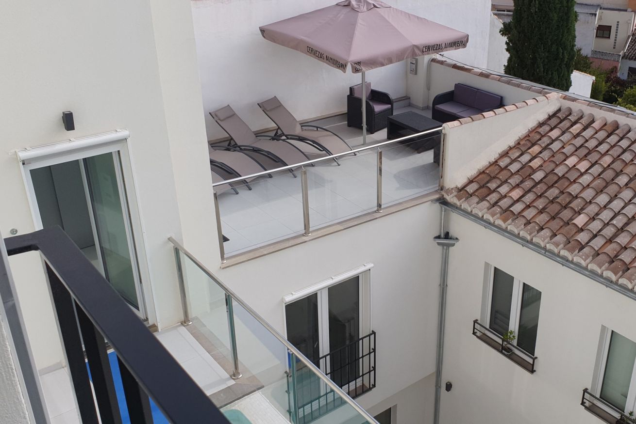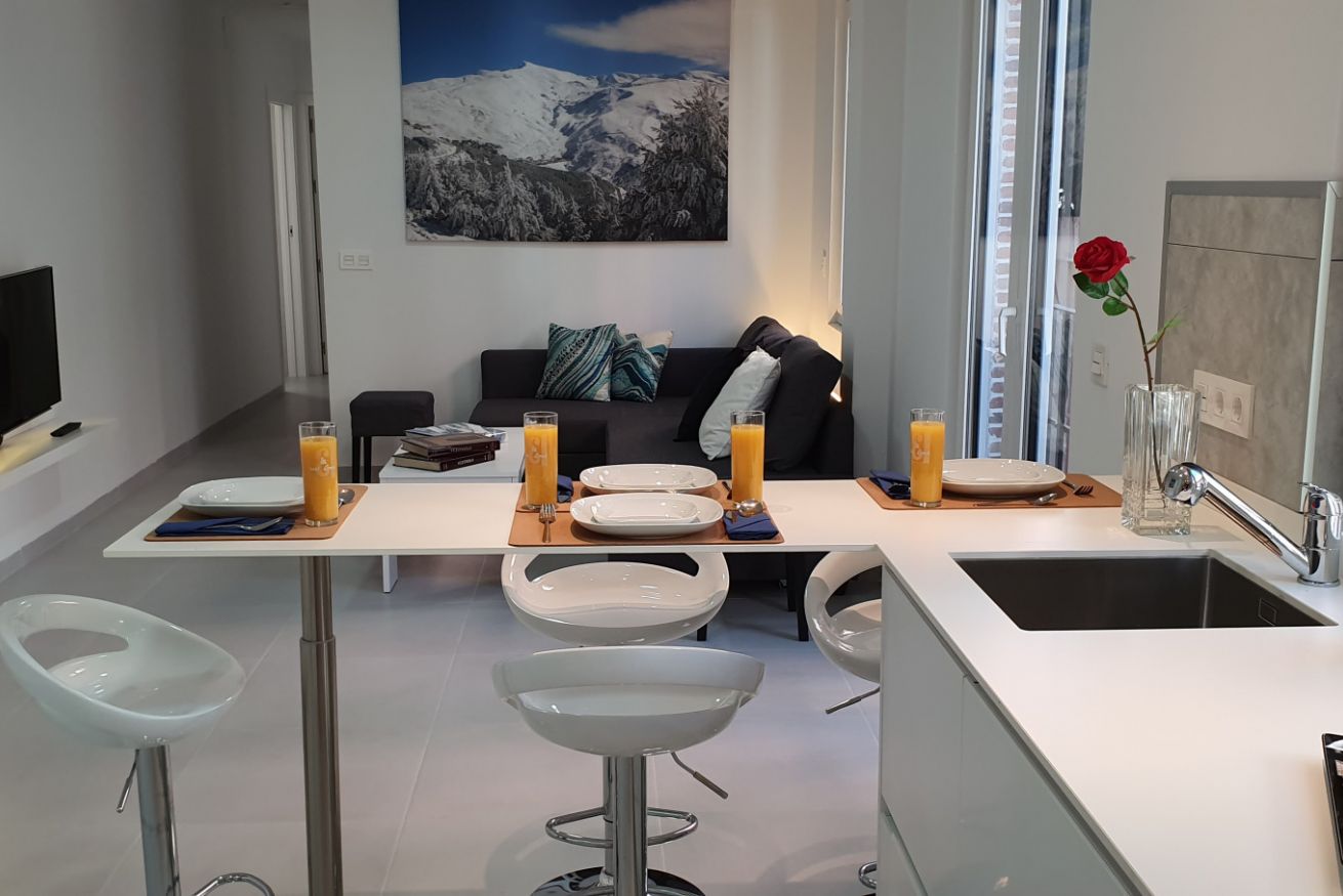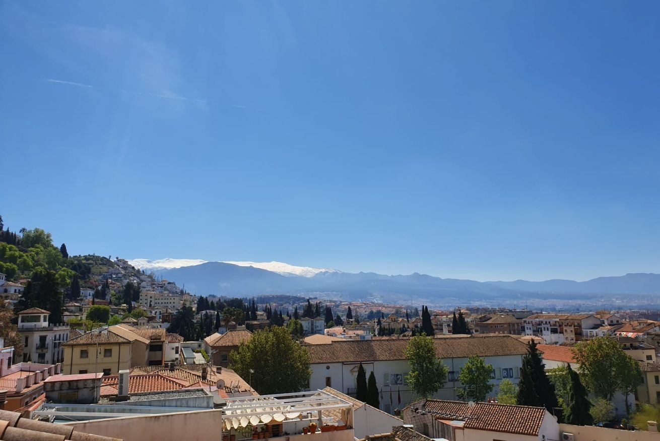 Apartamento de 80m2 . Tiene 2 dormitorios, salón comedor, cocina americana, ascensor directo al apartamento, acceso a piscina y terraza solárium con vistas sobre Granada